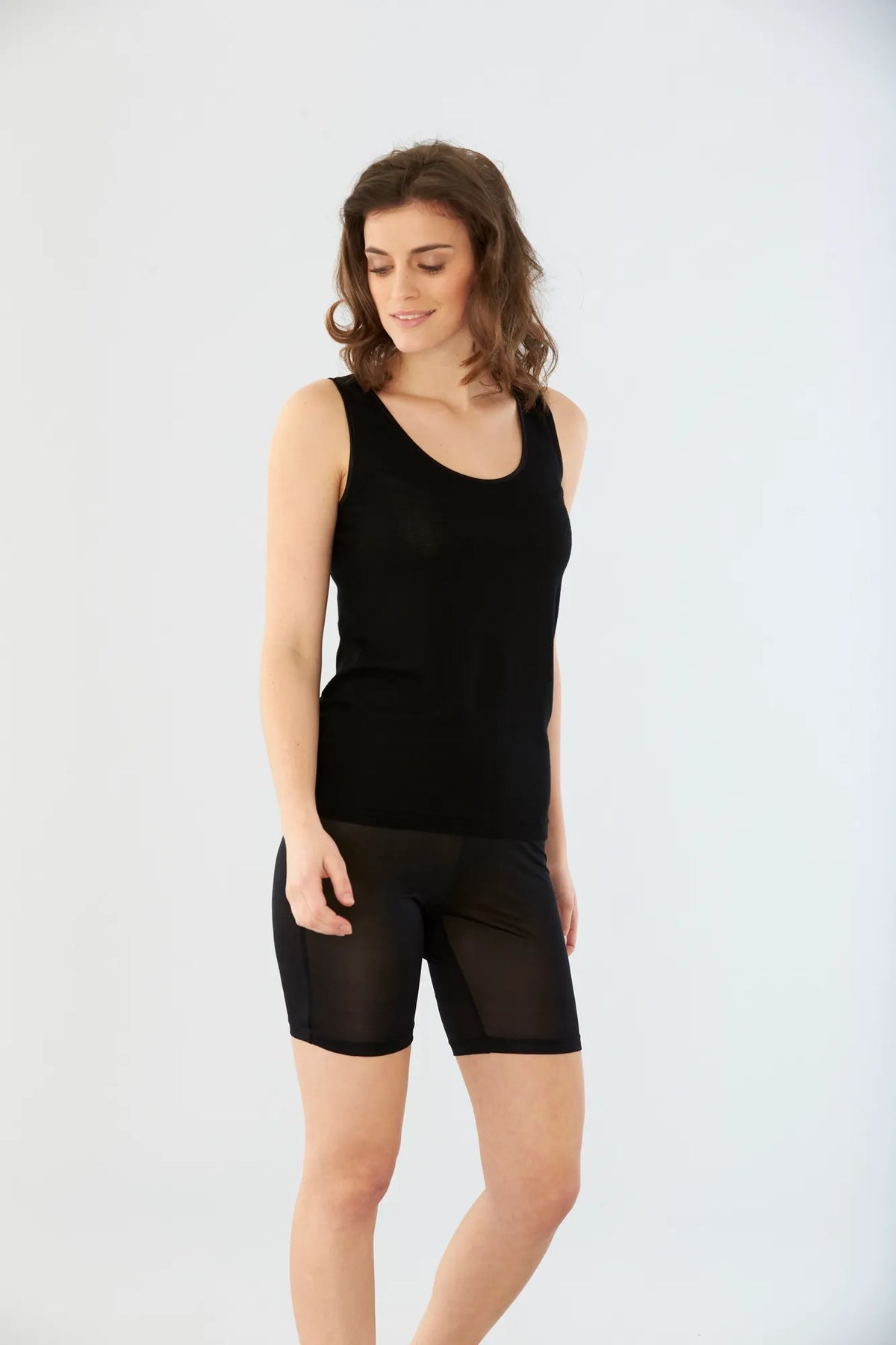 Explore our silk tank top for a luxurious and elegant feel, ideal for layering or as a standalone piece. For colder days, a wool tank top is an excellent choice, combining warmth with soft comfort. A bamboo linen, on the other hand, is perfect for those looking for an environmentally friendly alternative that feels cool and gentle on the skin. And for the classic style is a white tank top an obvious choice – simple and always just as stylish.